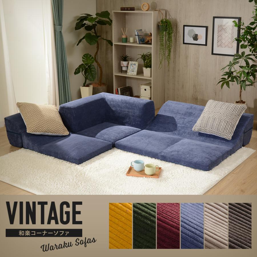コーナーソファ ローソファ ソファ コーデュロイ ヴィンテージ おしゃれ カ...