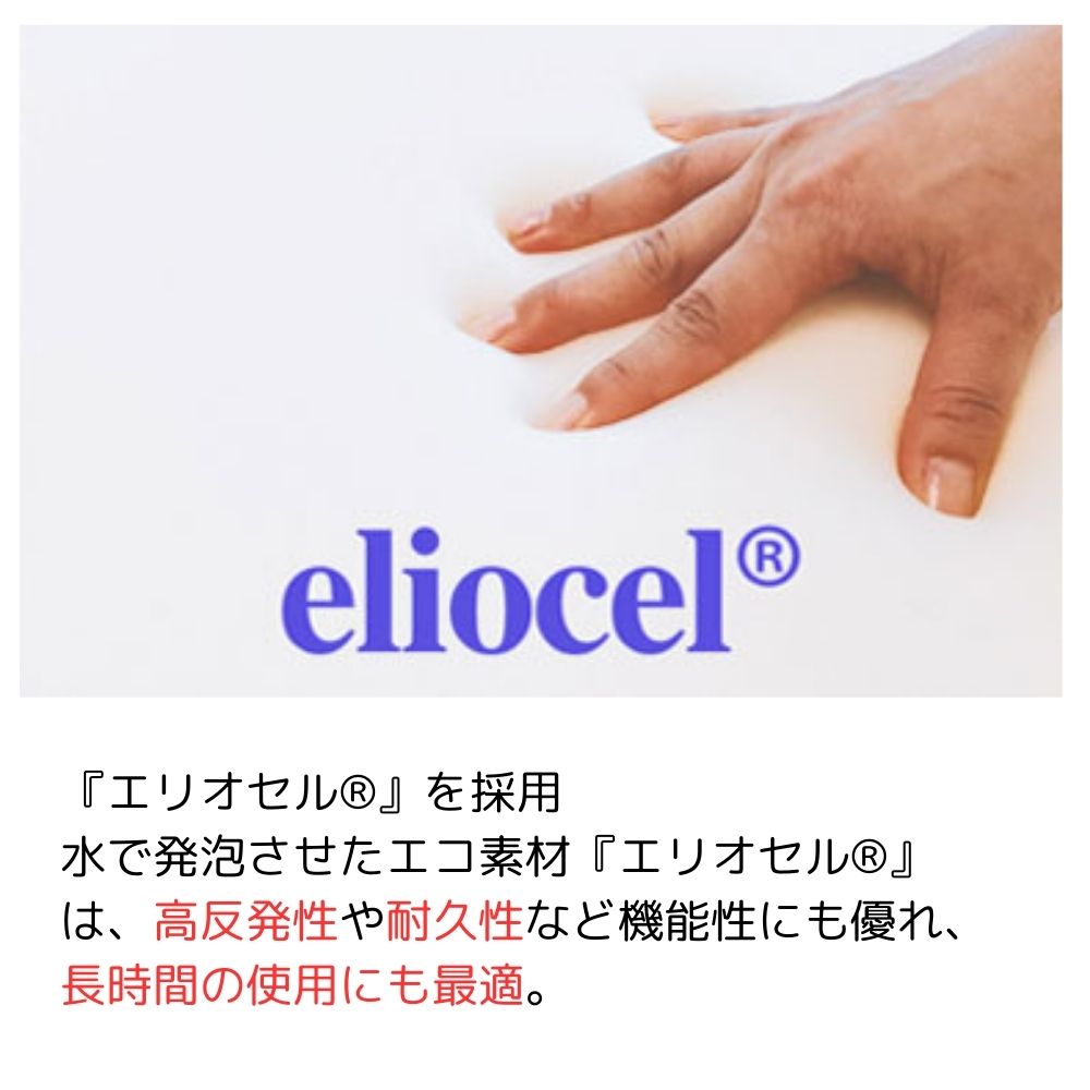 5,エコ素材のエリオセル?: 水で発泡させたエリオセル?は高反発性や耐久性に優れ、長時間の使用に最適です。
