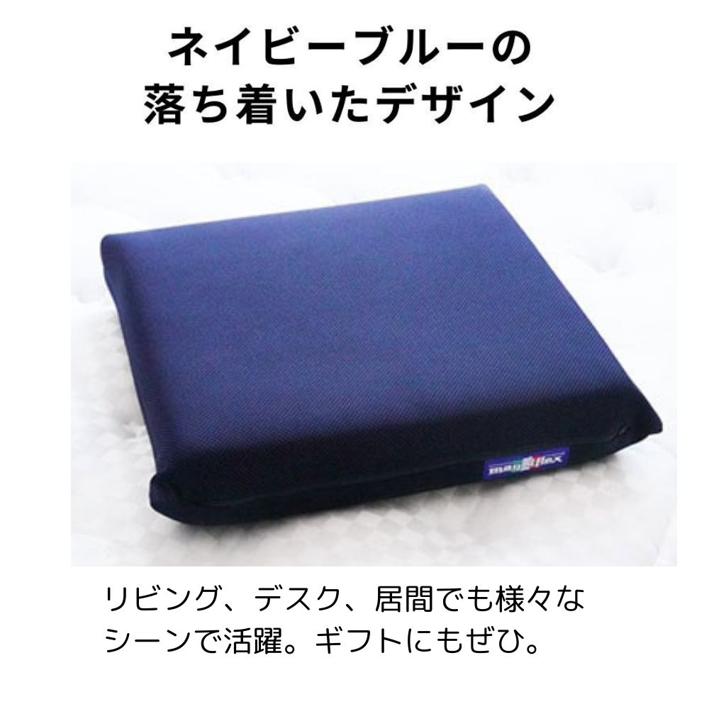 椅子の上、床、畳など、さまざまなシーンで活躍します。リビング、デスク、居間で使用できるネイビーブルーのデザイン。ギフトにもおすすめです。