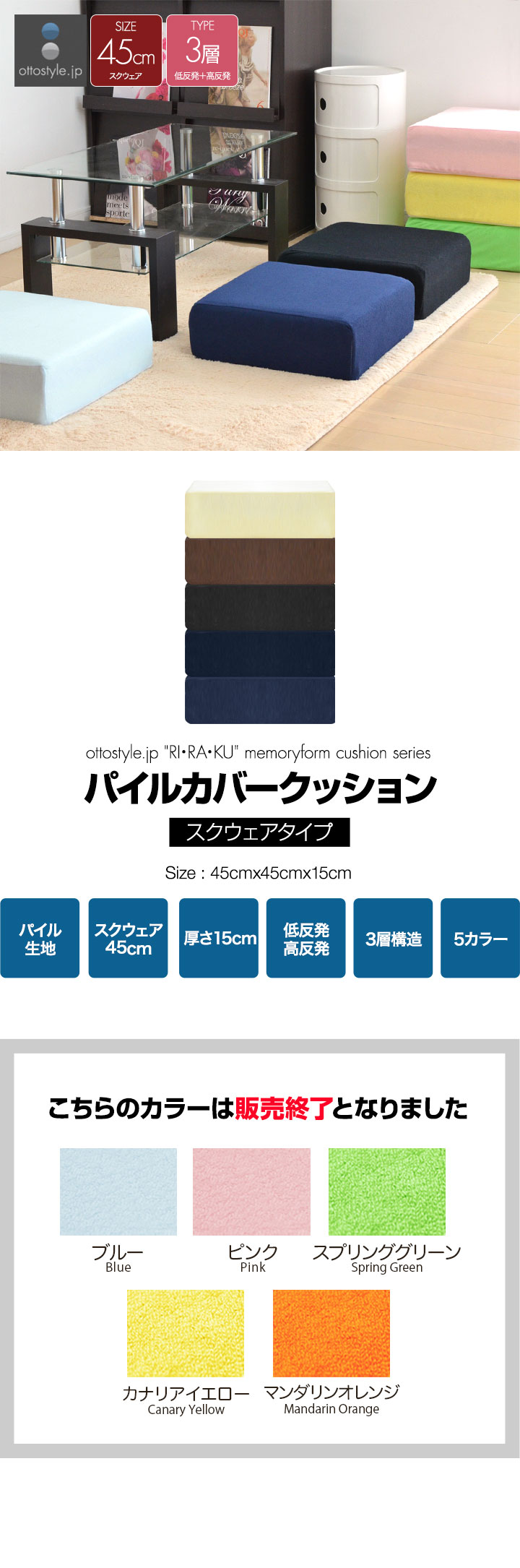 座布団 クッション 低反発 高反発 両面 3層 コンビクッション 1枚単品 45×45cm×厚手15cm 四角/スクエア 洗えるパイルカバー 座ぶとん 1年保証 送料無料
