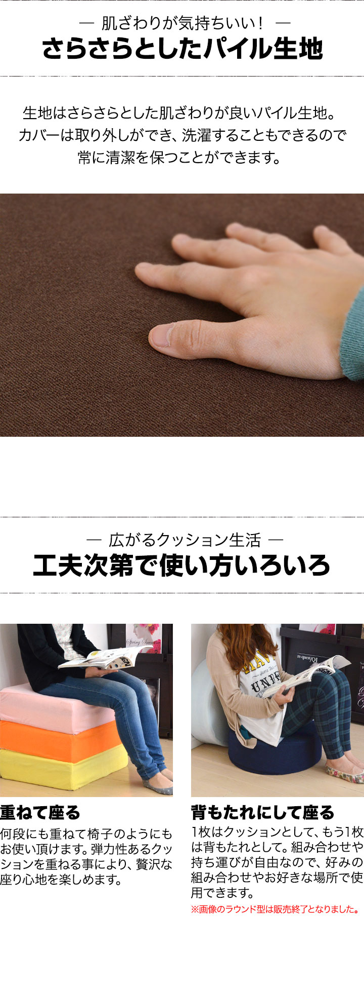 さらさらとしたパイル生地生地はさらさらとした肌ざわりが良いパイル生地。カバーは取り外しができ、洗濯することもできるので常に清潔を保つことができます。