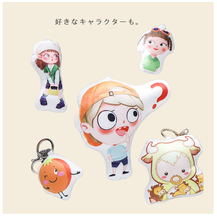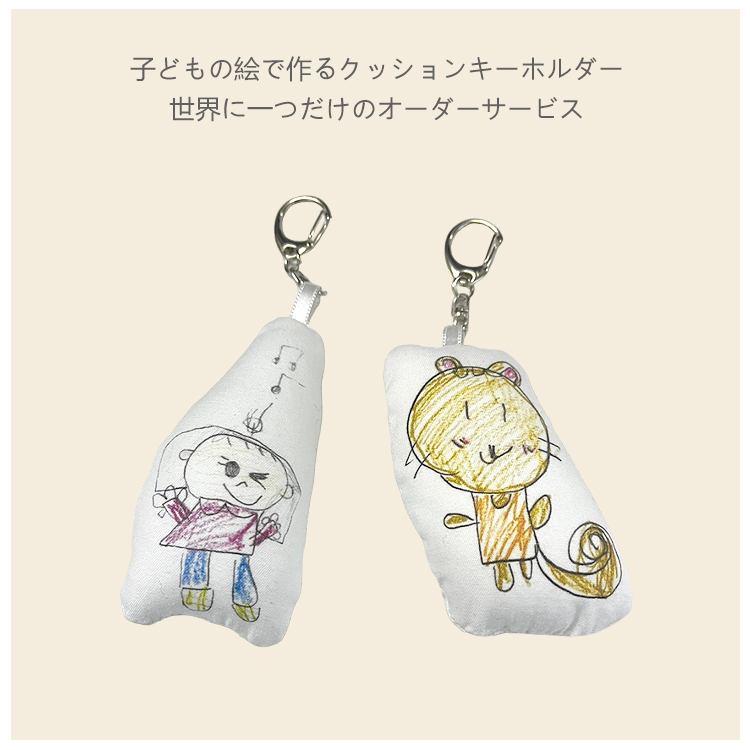 ふわふわとした触り心地の良いオリジナルクッションキーホルダー。