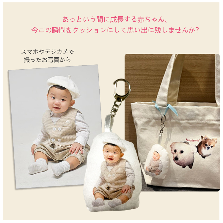 オーダーメイド クッションキーホルダー10cm 15cmメモリアルグッズ ペットオリジナル 写真入り プレゼント ギフト祖母 祖父 両親 出産記念 コラージュ