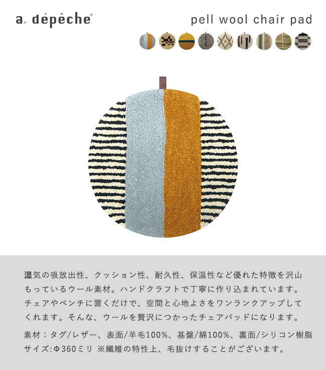 【即納】 チェアパッド チェアマット 椅子 マット ウール 360 座り心地 板座 PEL-WCP 丸 円 滑り止め デザイン アデペシュ 人気