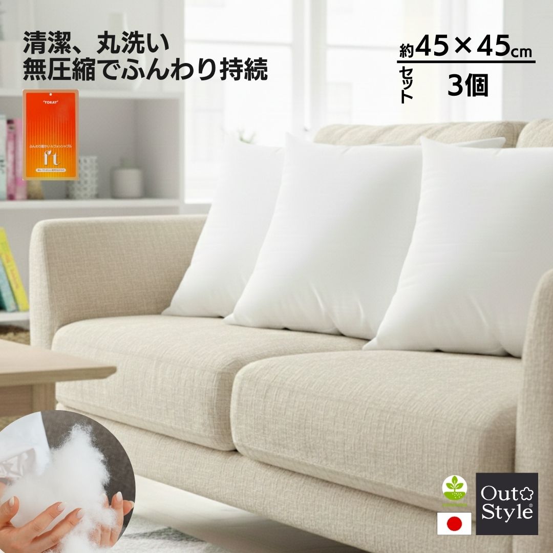 ヌードクッション クッション中身 45×45 洗える 背当て 日本製 FT わた 高反発 圧縮せずに出荷 お得 3個セット
