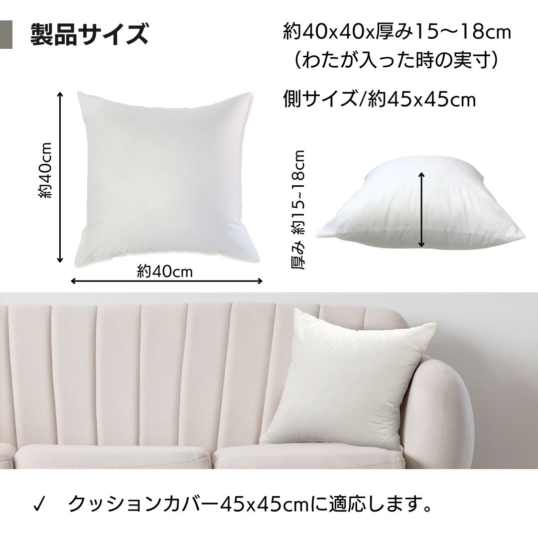 ヌードクッション クッション中身 背当て クッション 中身 45×45 洗える 日本製 いつも清潔 丸洗い 業務用 介護 病院 老人ホーム 飲食店 わた パンヤ 中綿 ふわふわ 高反発 圧縮せずに出荷 まとめ買い セット商品 お得 爆買